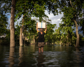 気候関連災害の件数は過去50年間で5倍に増えました。2024年には、気候関連災害によって4,580万人の避難民が生じました(UNFCCC、UNHCR)。
